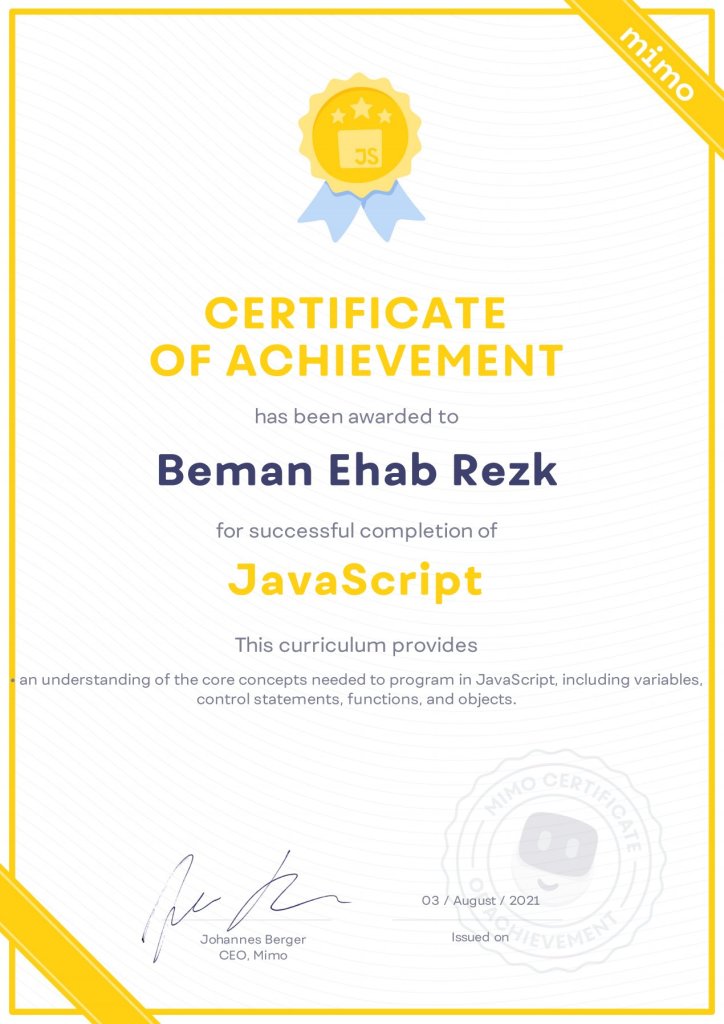 Beman Ehab Rezk, Born in Cairo in 2002, Graduated from high school with grade of 94.51% Maths Department, and Now on my second year in Banha Faculty of Engineering, Communication Department.